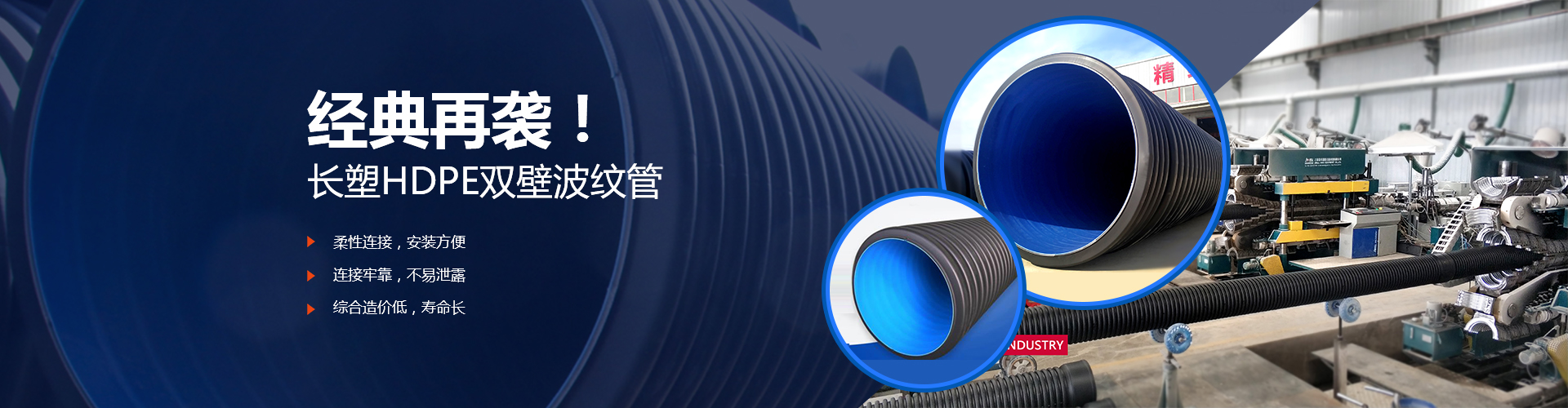 公司生產(chǎn)埋地排水排污HDPE雙壁波紋管等管道十多年,完善的生產(chǎn)設(shè)備、可靠的質(zhì)量檢測(cè)體系和設(shè)施,產(chǎn)品廣泛應(yīng)用于市政.交通、民建、通信、電力、化工、環(huán)保等行業(yè)。